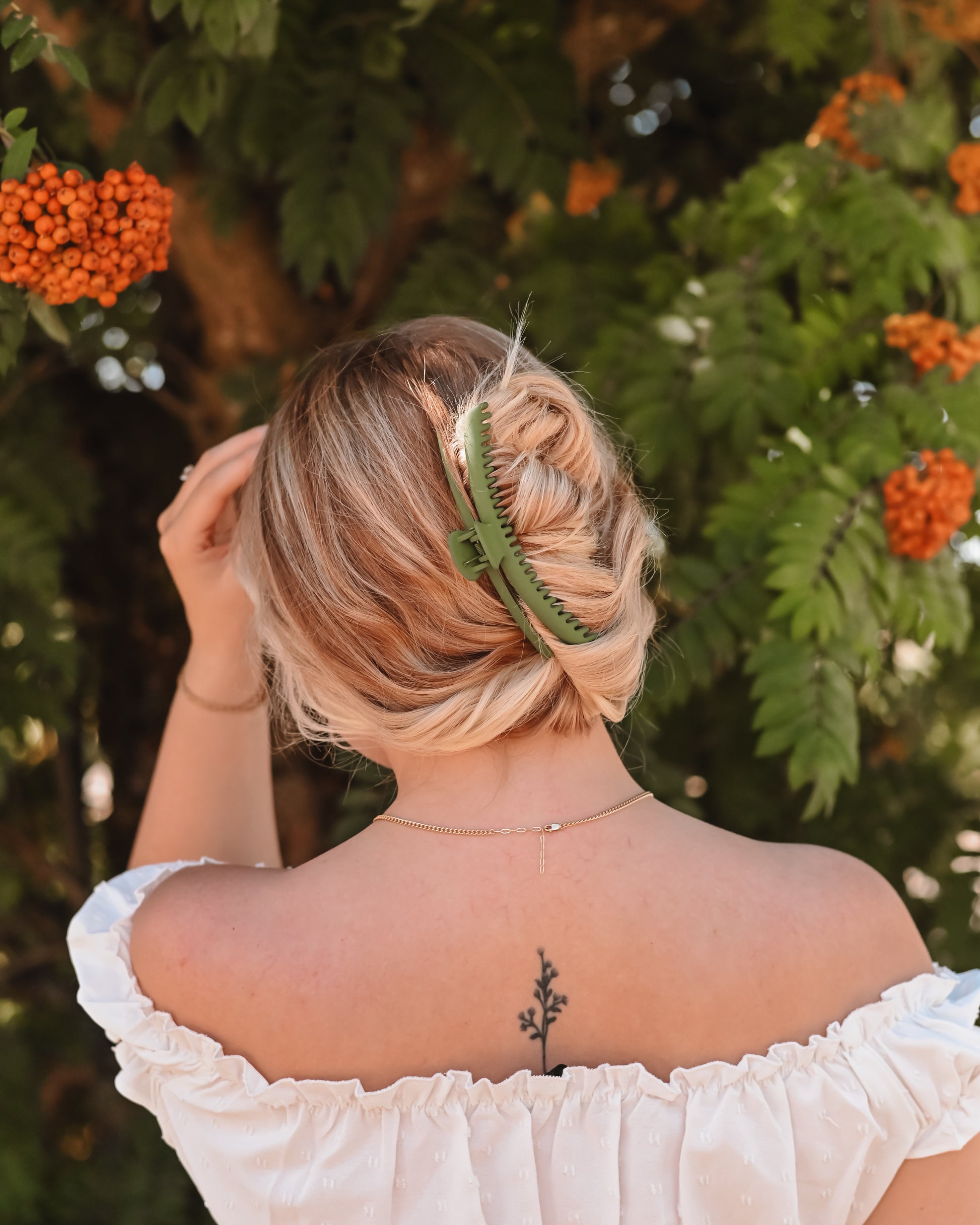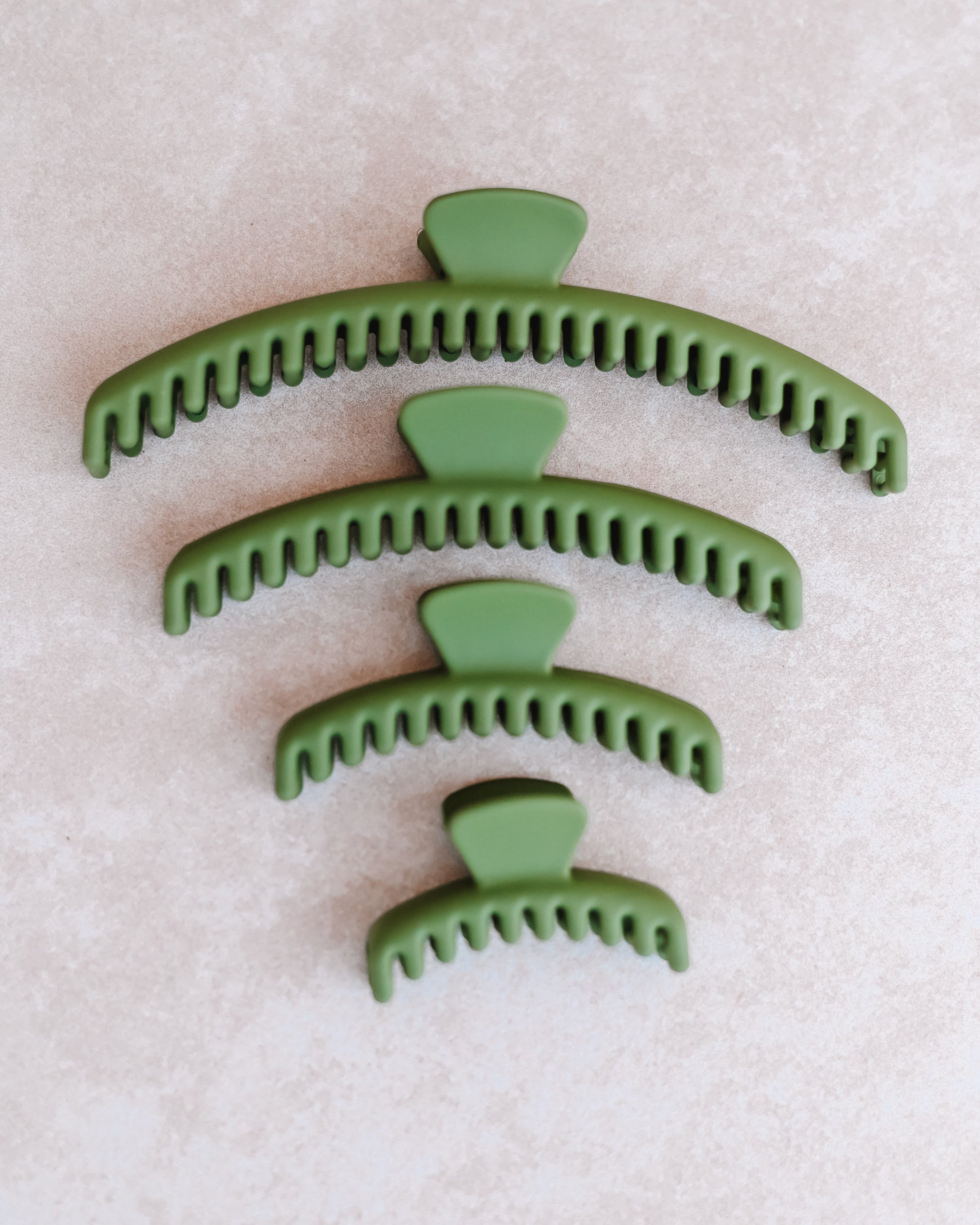 The Mega Hold Clip is a great go-to clip for every hair type, and works wonders at keeping hair in place all day long without causing damage. The structure and design of the Mega Hold allows for a comfortable fit through any activity, including laying down and driving! This clip is especially great for active occupations and hobbies. This Mega Hold is a dark green color with a matte finish.