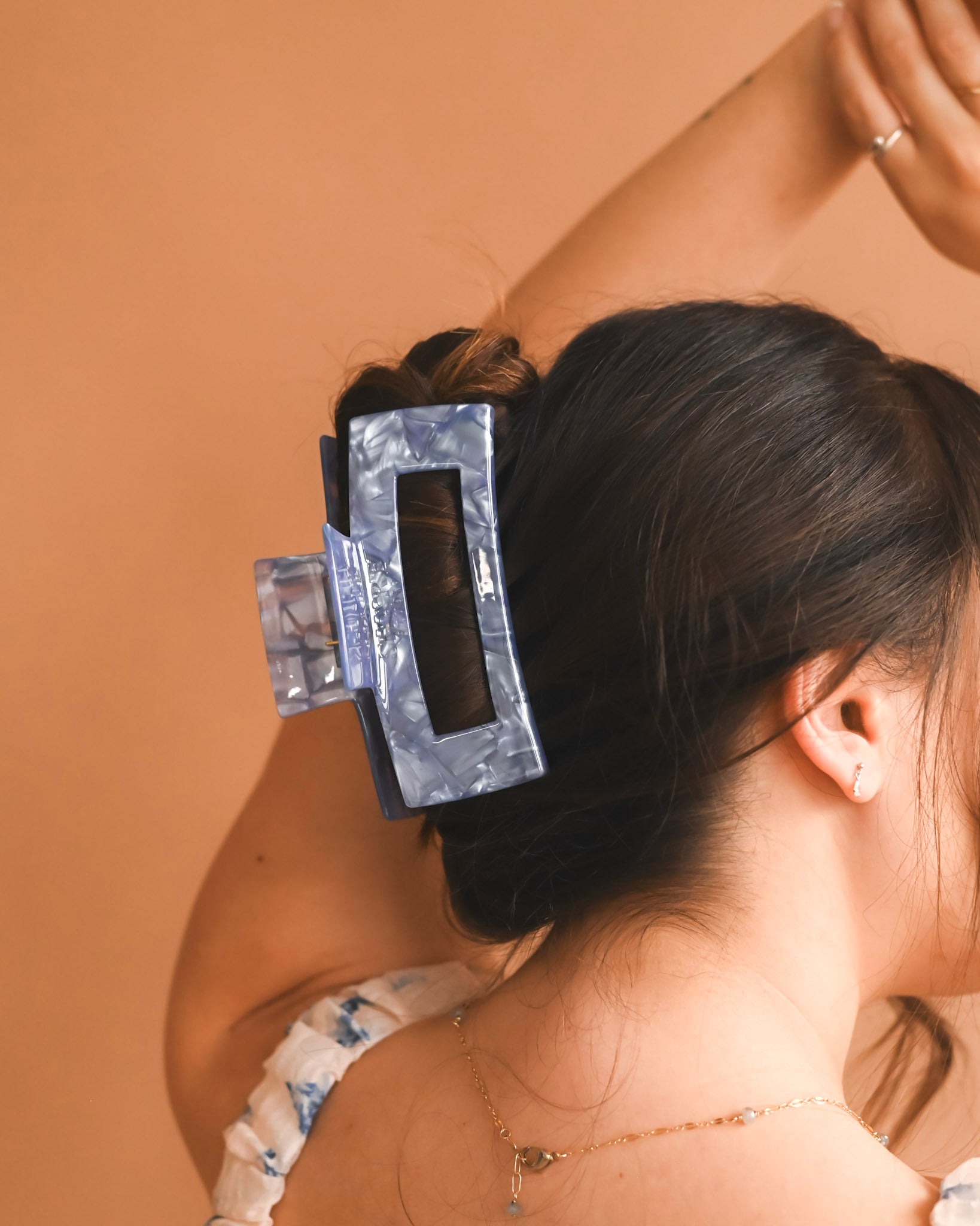 This clip is what dreams are made of! Introducing our custom Jumbo Acetate clip in the stunning color, Periwinkle Dreams! Made from acetate, this clip is not only eco-friendly but also as durable as it gets. Approximately 6 inches in length with ample areal space, this clip is designed for thick hair. Grab yours now!