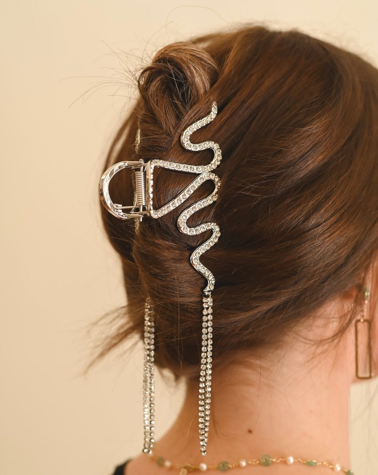 Introducing our exquisite Snake hair clip in gold and silver, a dazzling accessory that exudes elegance and style. Crafted in a luxurious gold hue and adorned with mesmerizing rhinestones, this clip is truly a work of art. Its unique design resembles a snake-like figure with captivating tail pieces, adding a touch of intrigue and glamour to any hairstyle.