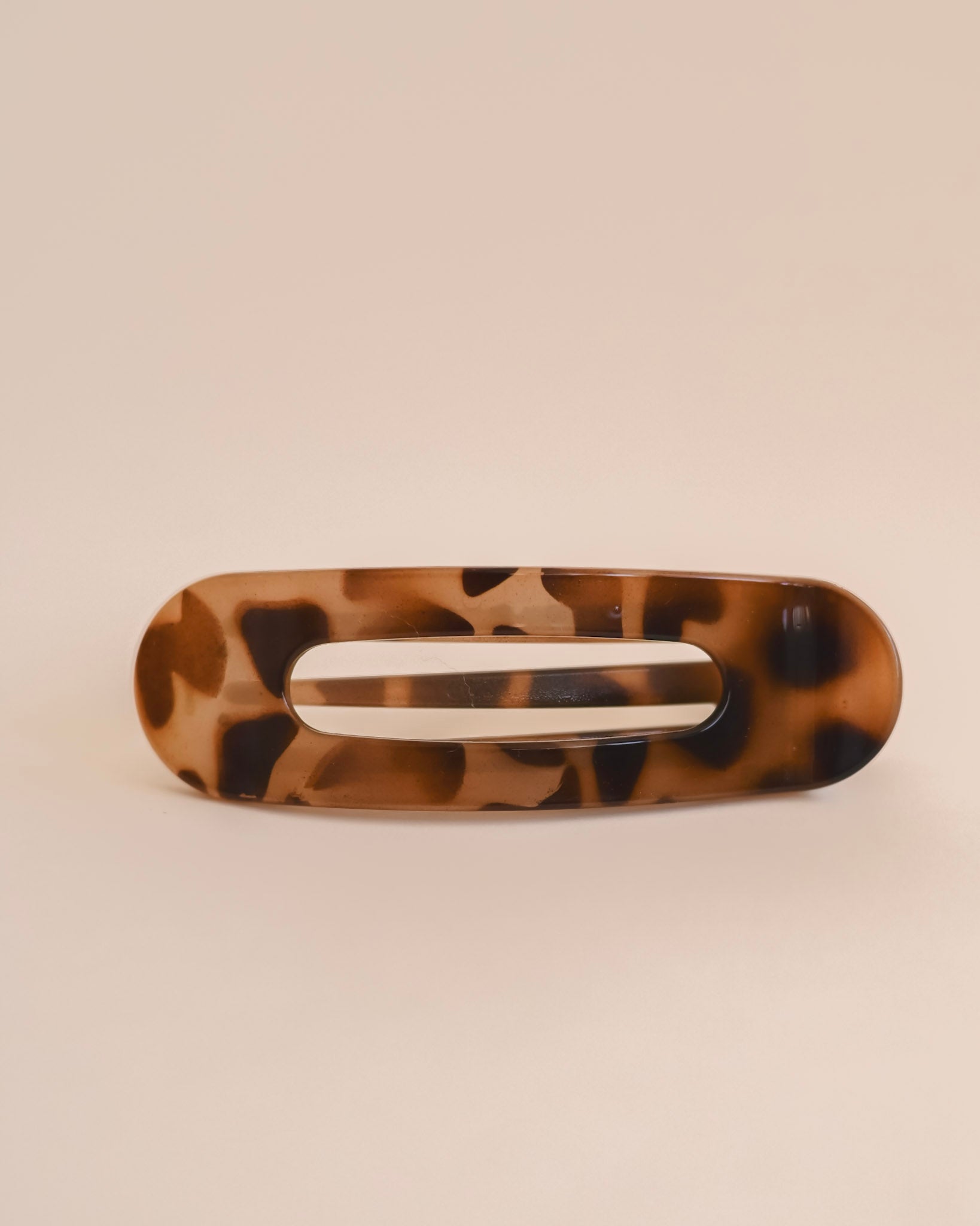Now in our most popular print, shiny tortoise. This hair clip is designed to provide a comfortable and secure hold while also laying flat against your head. Its unique shape and texture allow for a more natural and discreet look, perfect for any occasion.
