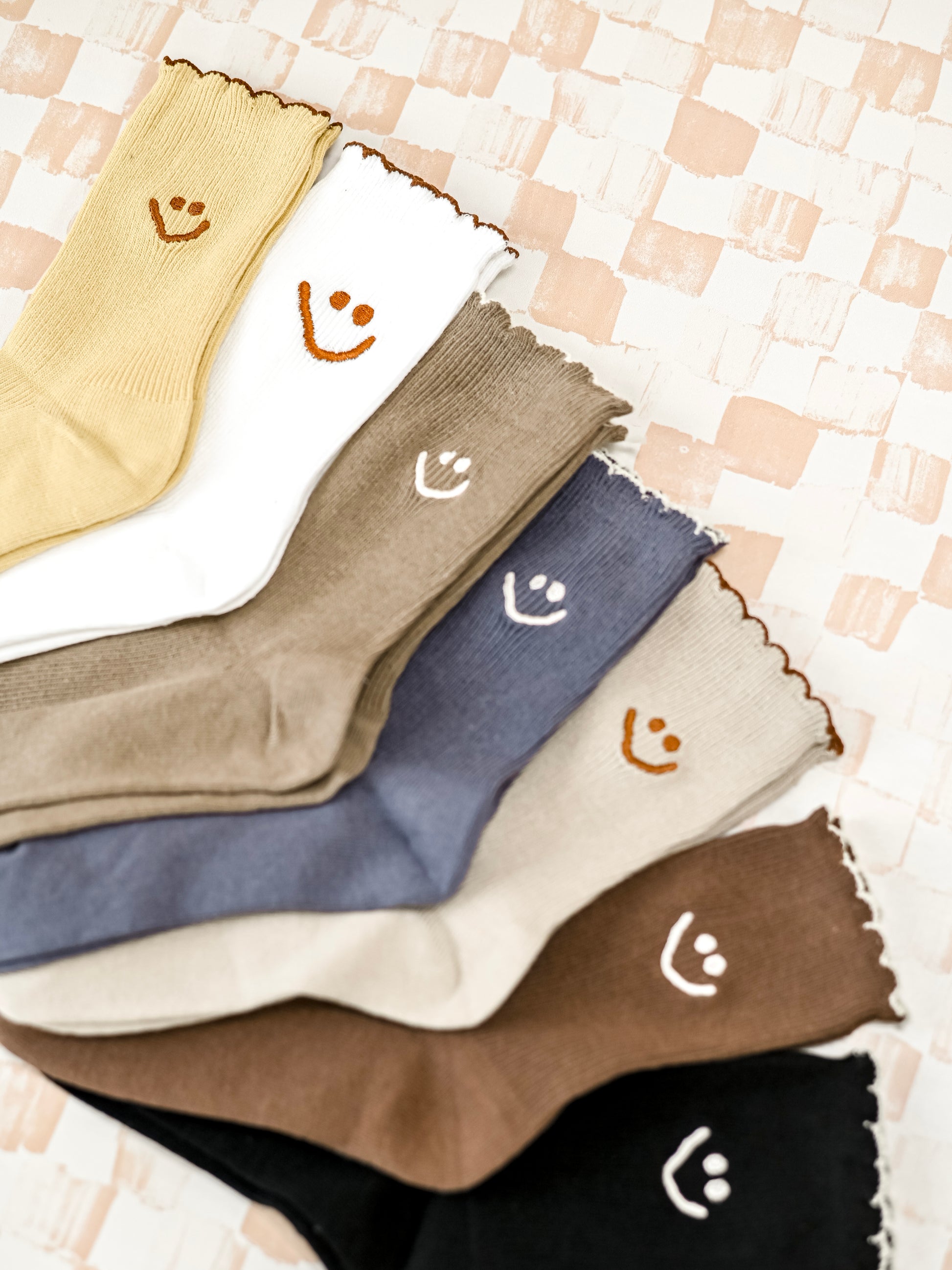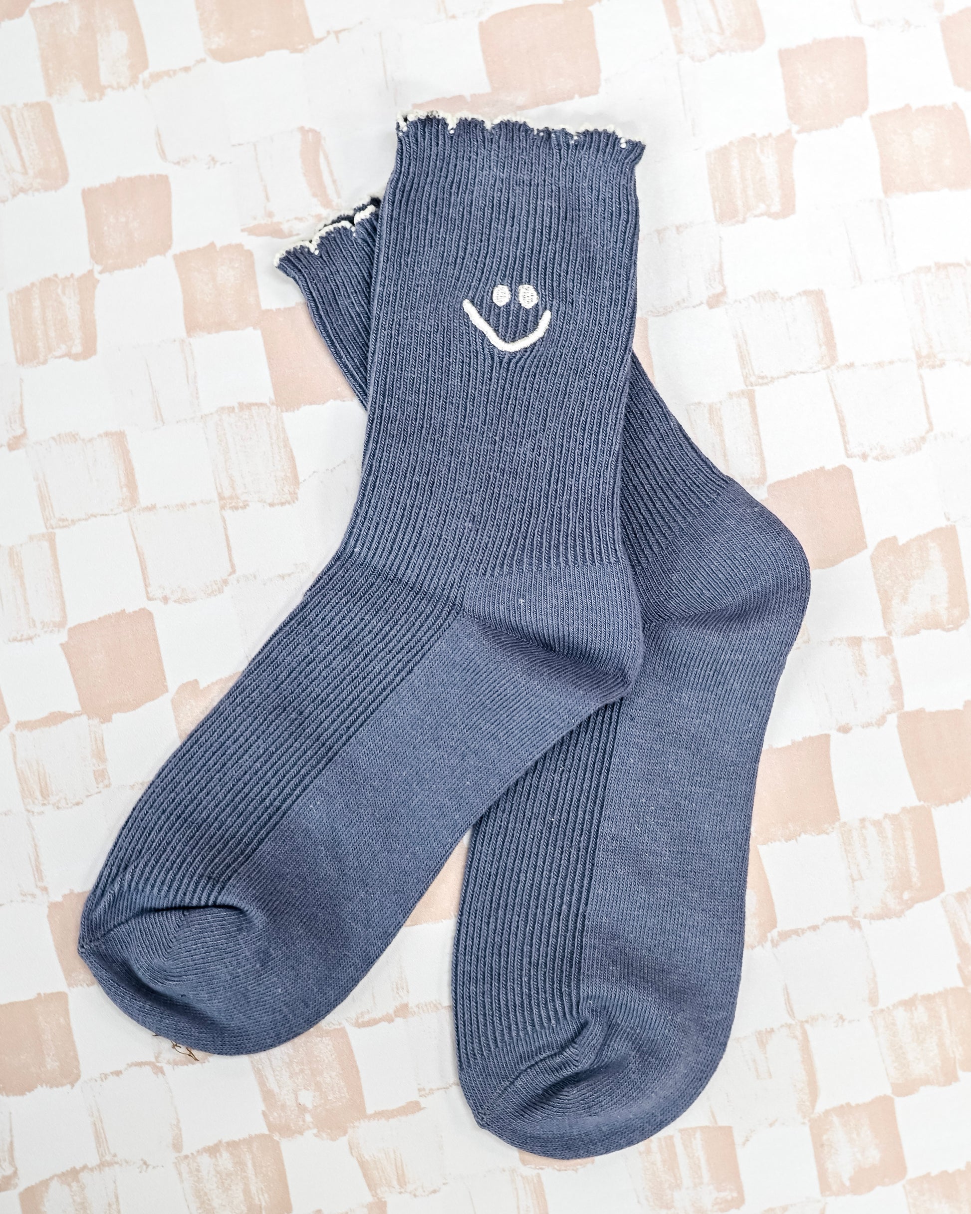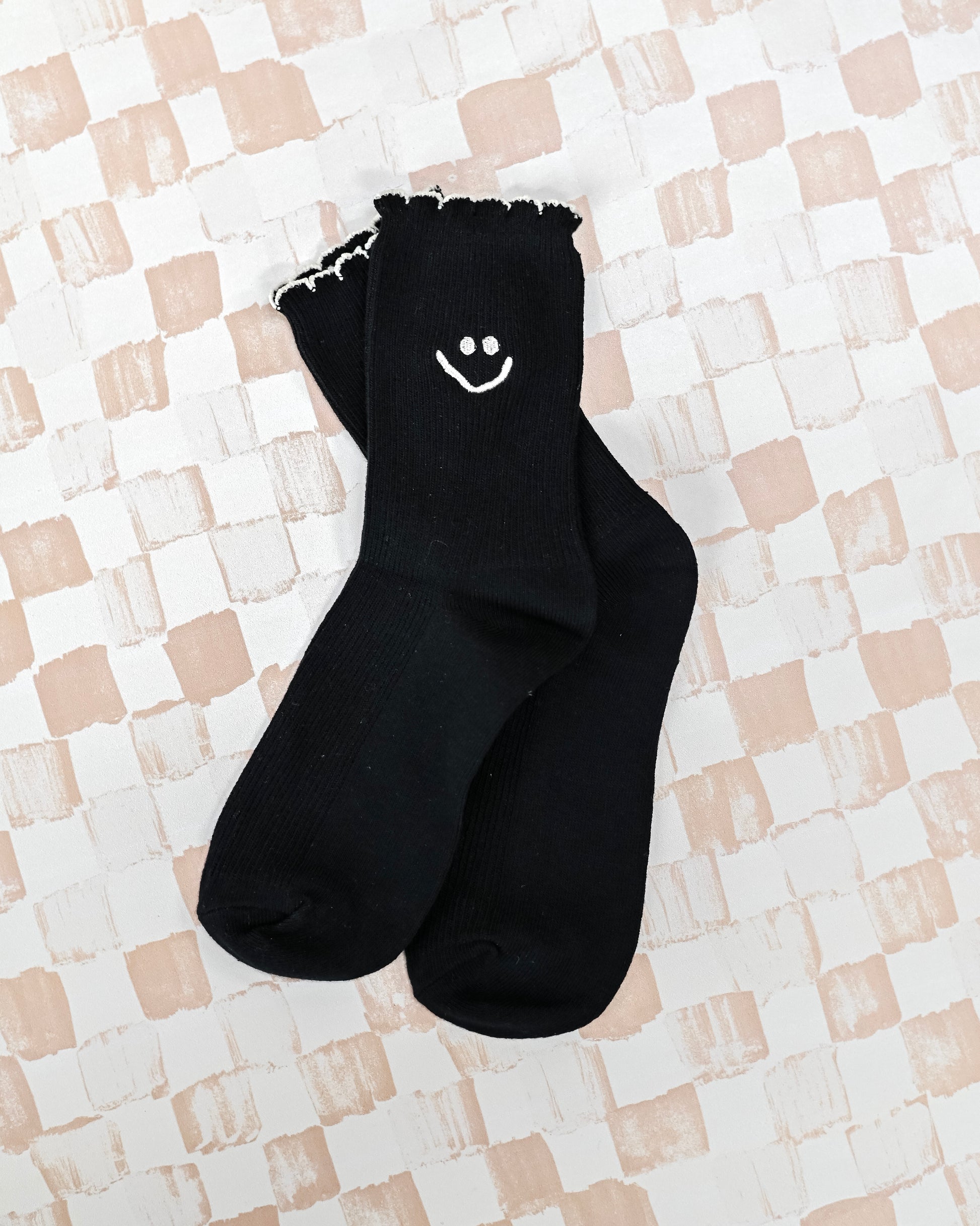 Say hello to your new favorite pair of socks! These adorable, vintage-inspired crew socks add a perfect basic touch to your outfit and will have everyone asking where you got them from! Our Embroidered Ruffle Smiley Socks have ruffled fringe on the top and are ultra stretchy and breathable, never straying from comfort. Get yours today in seven perfect colors!