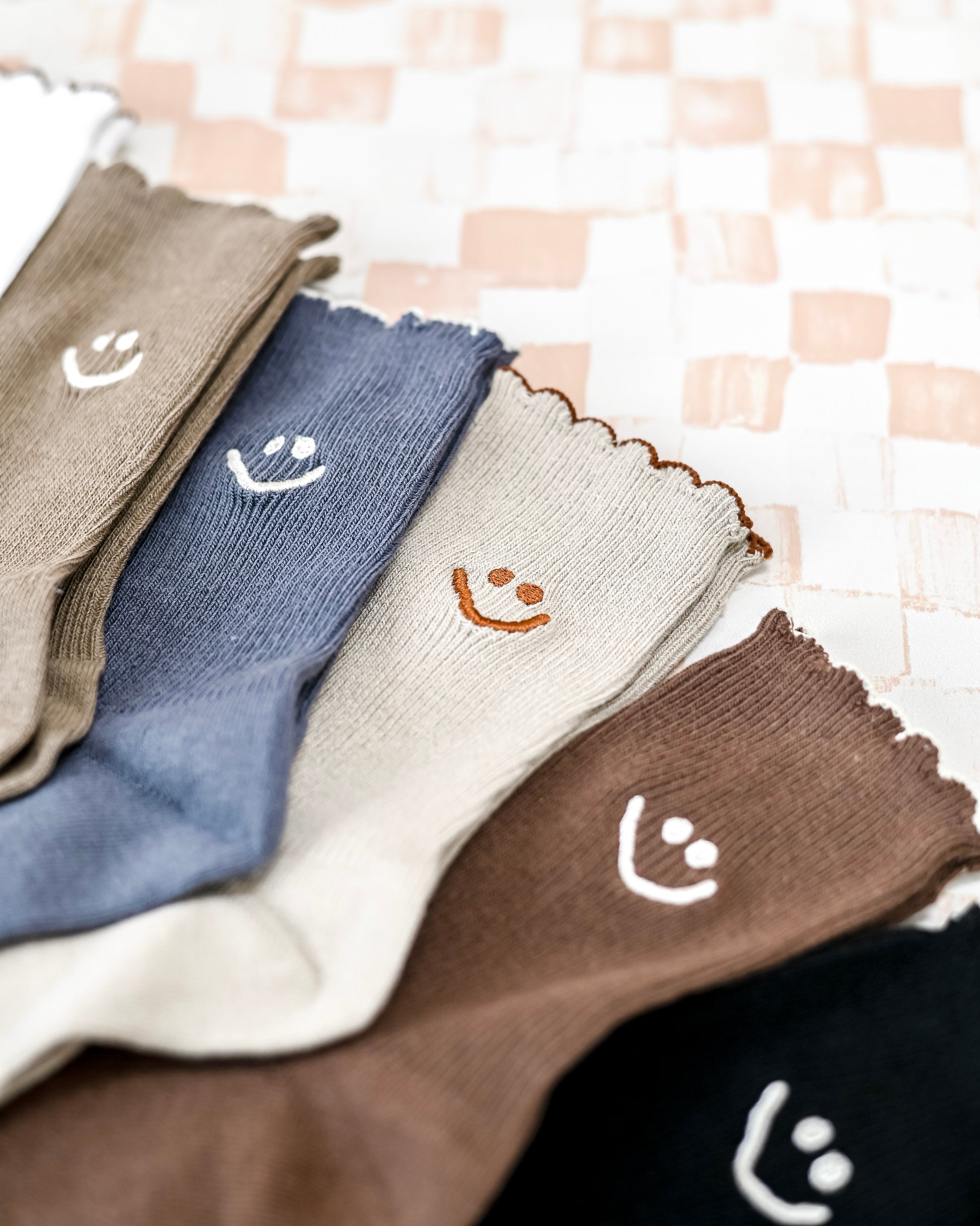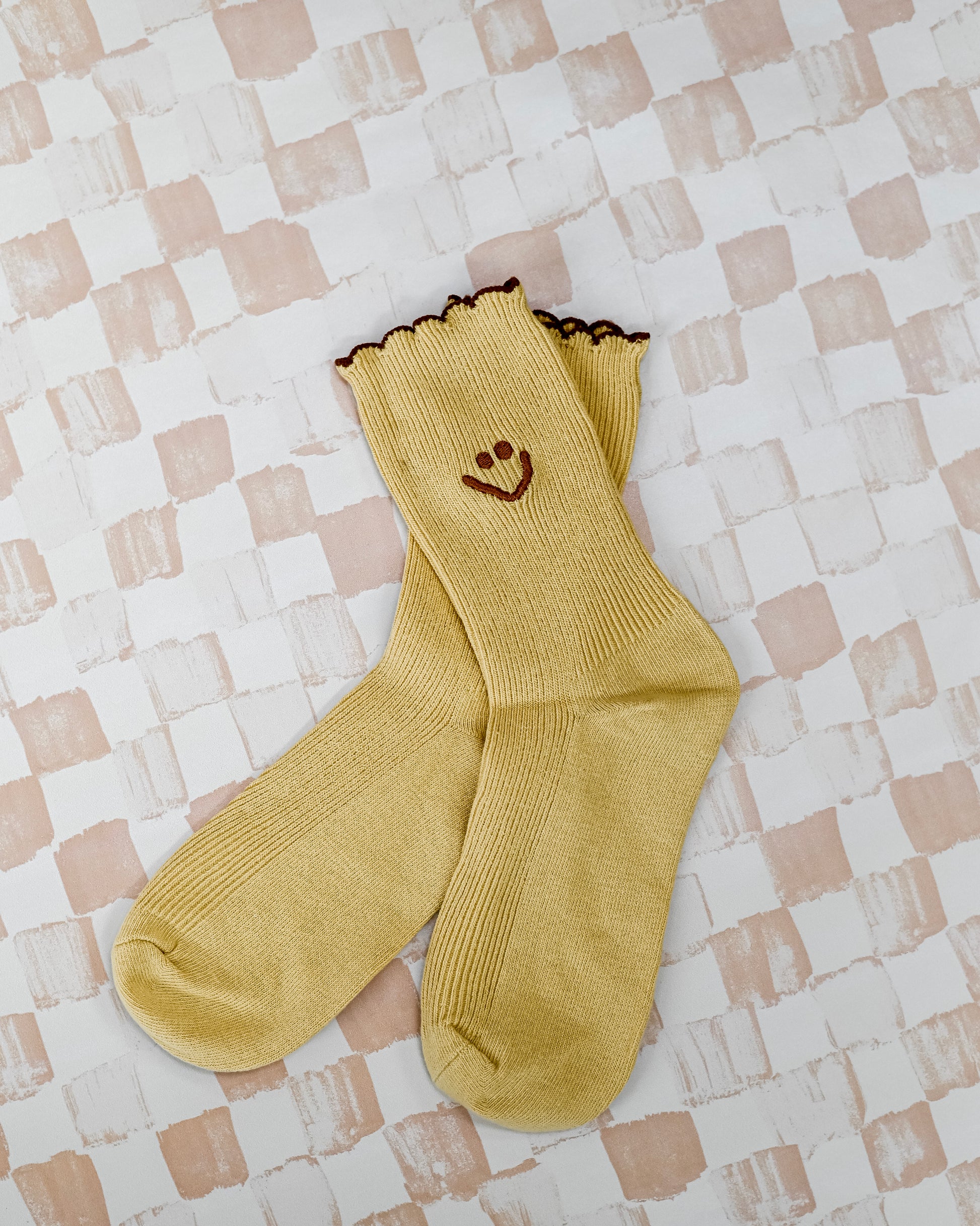 Embroidered Ruffle Smiley Socks